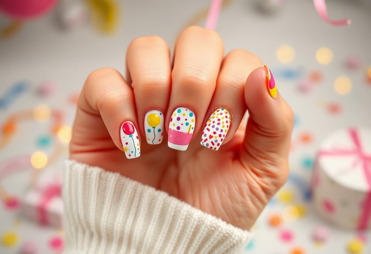 Ultimately, you can elevate your birthday celebrations with stunning nail art designs that reflect your personality and joy. From vibrant cupcakes to elegant balloons, there are endless creative possibilities to make your nails a true celebration. For inspiration, consider exploring this DIY Freehand Nail Art – Birthday Cake idea that can bring a festive touch to your look. With these designs, your nails will undoubtedly become a highlight of your special day!